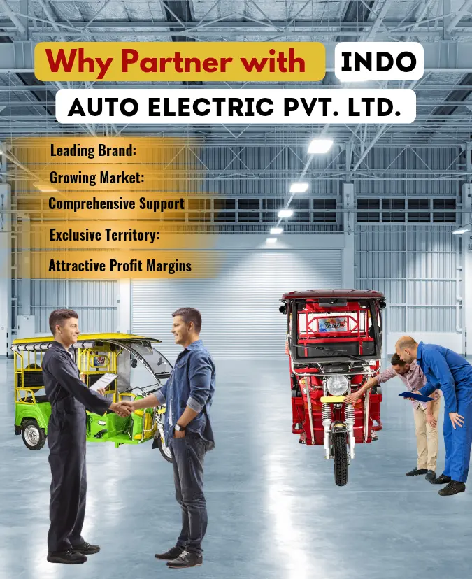 INDO AUTO ELECTRIC Pvt. Ltd. is at the forefront of the electric vehicle industry, offering innovative and eco-friendly E-Rickshaws. We are expanding our network and inviting enthusiastic entrepreneurs to join us as authorized E-Rickshaw dealers in Bihar and Jharkhand. Seize this opportunity to be a part of the green transportation movement and start a successful business with our support.
